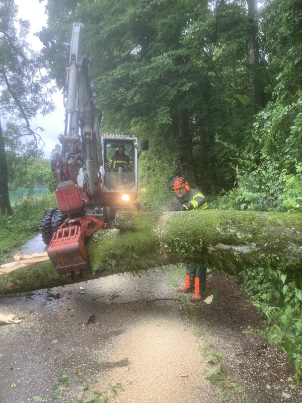 (MR) Das wetterbedingte Hochwasser hat uns vom 31. Mai bis zum 02. Juni in mehreren Einsätzen gefordert. Es galt verschiedenste Lagen infolge des Starkregens abzuarbeiten. Darunter galt es unter anderem umgestürtzte Bäume von Straßen zu entfernen, Wasser aus Kellern zu pumpen und je nach Bedarf und Lage die kreisweite Einsatzlage zu unterstützen.