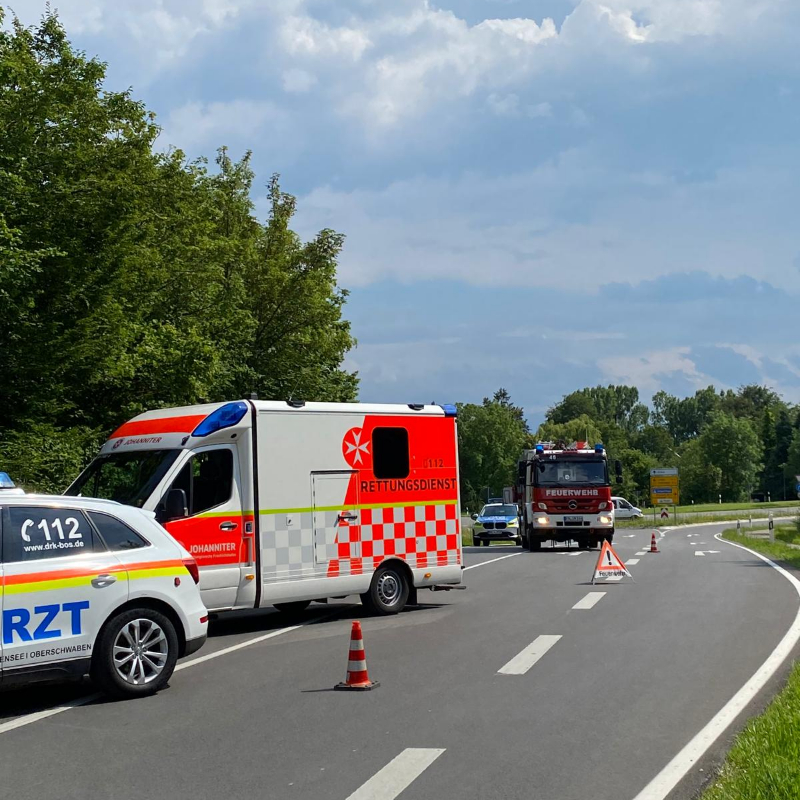 Ausgerückte Fahrzeuge: Fl. Immenstaad 19 (MTW); Fl. Immenstaad 46 (HLF); Rettungswagen; NEF; Polizei