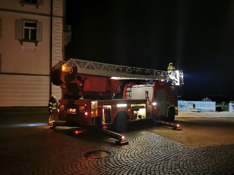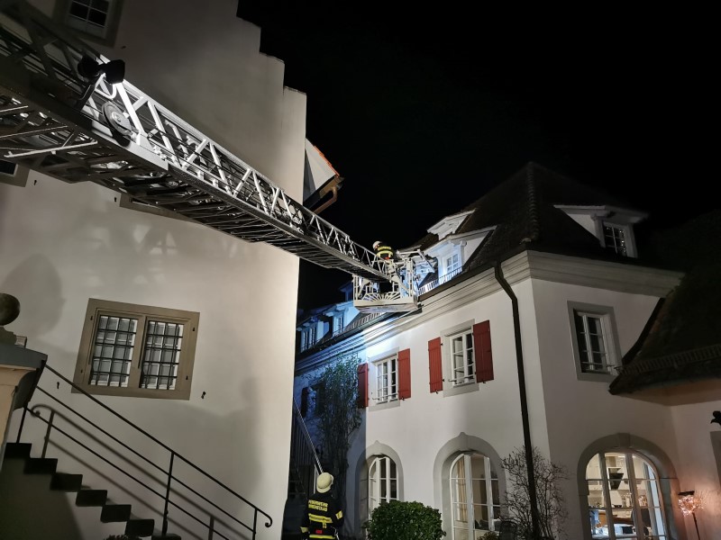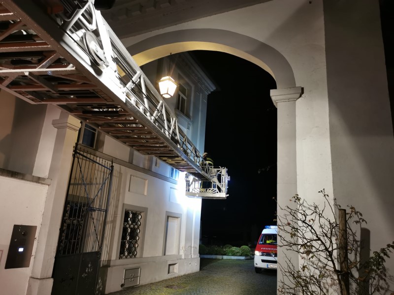 Drehleiterübung im Schloss Kirchberg