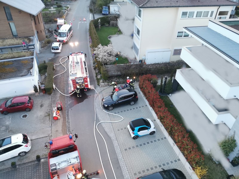 (MR) Am Montagabend hatten wir unsere erste Gesamtprobe des Jahres in Zusammenarbeit mit dem DRK Immenstaad. Übungsobjekt war ein Neubau im Kapellenweg, die Lage vor Ort stellte sich als Brand in der Tiefgarage inklusive Menschenrettung dar. Wir freuen uns sehr, dass wir endlich wieder mit den Kollegen des Rettungsdienstes und in voller Stärke üben können. Vor der Übung wurden alle Beteiligten negativ auf Corona getestet.
