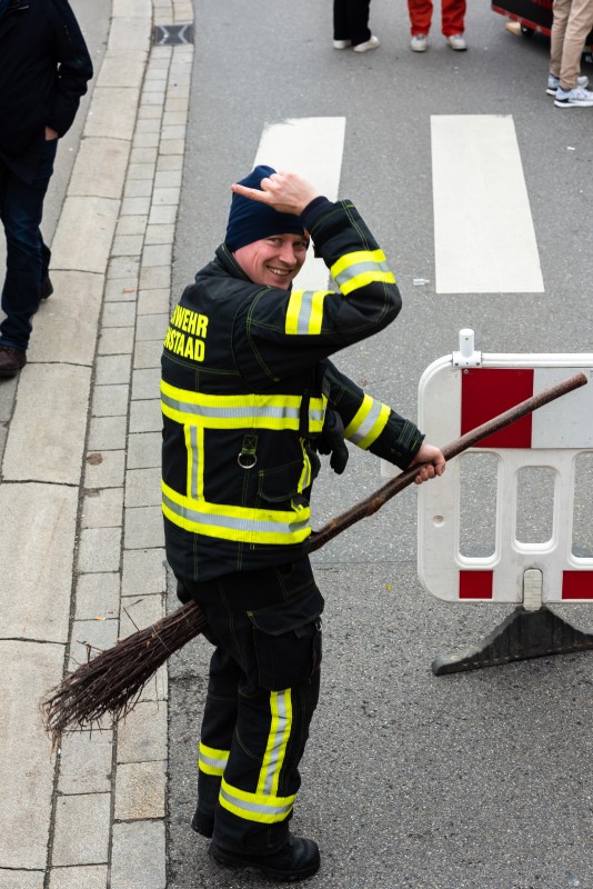 (MR) Am großen Jubiläumswochenende zum 175-jährigen Bestehen der NG Hennenschlitter waren wir mit von der Partie um die Sicherheit rund um die Festivitäten zu gewährleisten. So waren wir am Freitag am Regionenball des ANR und am Samstag parallel zum Umzug in der Linzgauhalle jeweils mit einem Brandsicherheitswachdienst vor Ort. Am Samstag waren wir dann in größerem Maße gefordert, da es hier galt den Umzug an verschiedenen Stellen im Ort gleichzeitig abzusichern und die Lage in der Linzgauhalle im Blick zu behalten. Bis auf den GW-T waren alle unsere Fahrzeuge inklusive Mannschaft im Ort verteilt. Zusätzlich waren vereinzelt von uns Verkehrsposten verteilt, die an wichtigen Kreuzungsstellen die Straßen sperrten und die Verkehrsteilnehmer informierten. Das Treiben auf dem Festplatz und in der Halle ging geordnet und ohne größere Vorkommnisse vonstatten. Am Hennenbrunnen kam es leider zu einem kleinen Zwischenfall mit zwei Hagnauer Kletterern, die aus den schwindelerregenden Höhen des Brunnens mehr wieder mitnahmen als sie es ursprünglich geplant hatten. Die obere Brunnenfigur wurde dabei ihrem Nest entrissen, sodass wir für die flüchtige Henne eine übergangsmäßige Heimat auftreiben mussten. Die Kletterer blieben von der Aktion unversehrt.