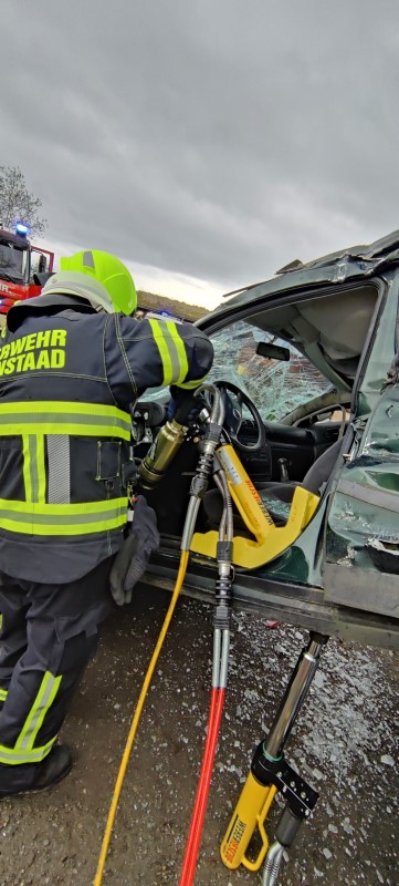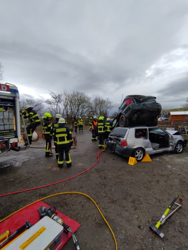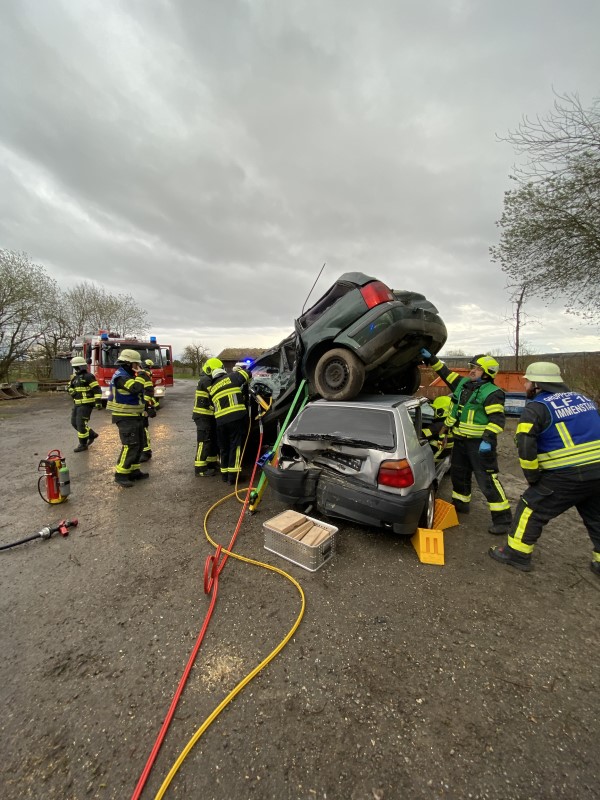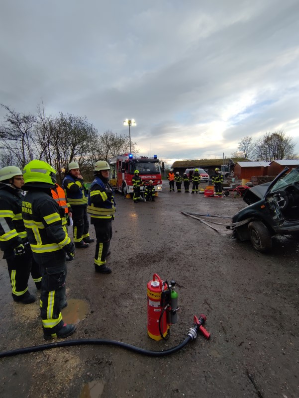 (MR) Am letzten Freitag hatten wir unsere Frühjahreshauptübung. In der gleichzeitig ersten Gesamtübung des Jahres standen technische Hilfe beim Verkehrsunfall und Bekämpfung eines PKW-Brands mit unserer neu angeschafften PKW-Löschdecke auf dem Programm. Die Lage beim Verkehrsunfall stellte unsere Gruppenführer vor einige schwierige Entscheidungen und ließ fast alle unsere Ausrüstungsgegenstände für die technische Hilfe zum Einsatz kommen.