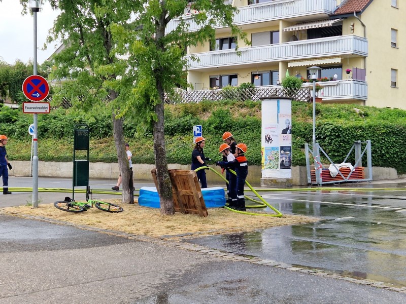 (MR) Dieses Jahr feierten wir an einem schönen Sonntag unseren Familientag. Viele der Kinder sowie Erwachsenen nutzten die diversen Angebote der Abkühlung, die von der Wasserbombe bis zum Swimming-Pool mit Palmendekor allesamt vorhanden waren. Dieses Fest wurde von uns veranstaltet zum Dank an die Familien, die Zeit, Nerven und noch so viel mehr investieren, dass ihre Frau/Mann bei der Feuerwehr helfen kann. Es hat uns ebenfalls sehr gefreut, dass viele Mitglieder unserer Kinder- und Jugendgruppe mit ihren Familien der Einladung gefolgt sind.