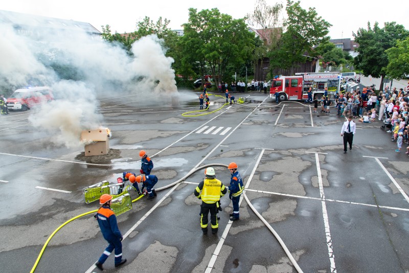 (MR) Diesen Juni feiert unsere Jugendfeuerwehr ihr 20-jähriges Bestehen! Zu diesem Anlass gab es am Donnerstag, den 06.06. einen offiziellen Festakt. In einem offiziellen Teil gab es einen Rückblick auf die Entwicklung der Jugendfeuerwehr in Immenstaad über die letzten 20 Jahre. Zudem machten alle Redner sehr deutlich, welchen Stellenwert die Jugendfeuerwehr für die Zukunft der Freiwilligen Feuerwehr hat. Im Anschluss an den offiziellen Teil stellten unsere Kinder- und Jugendgruppe ihr Können zur Schau: die Kindergruppe bei einer Demonstration zum Thema Rettungsgasse und die Jugendgruppe in einem Löschangriff mit zwei Löschgruppenfahrzeugen.