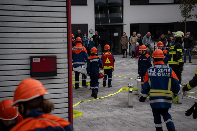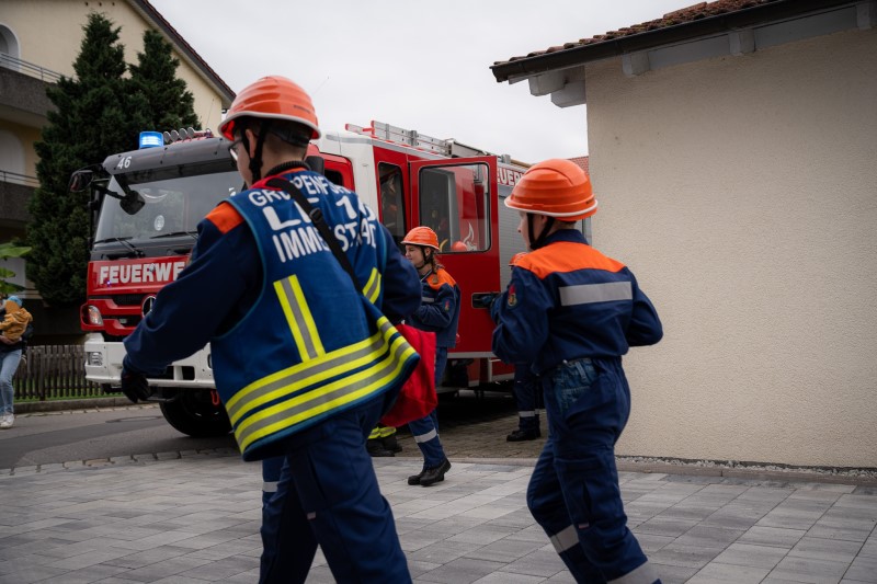 (MR) Die Jahreshauptübung unserer Jugendgruppe fand dieses Jahr wie bei der Einsatzabteilung ebenfalls am Neubau in der Brodmannstraße / Kapellenweg statt. Annahme war ein Brand in einer Industriehalle mit vermissten Personen. Zum Einsatz ausgerückt ist die Jugendgruppe mit 2 Löschgruppenfahrzeugen und dem Mannschaftstransportwagen. Zusätzlich wurden unsere Jugendlichen bei der Versorgung der Verletzten tatkräftig unterstützt vom Nachwuchs des Jugendrotkreuz. Ein Trupp ist direkt zur Menschenrettung in die Halle vorgedrungen, während weitere Trupps von außen eine Riegelstellung aufbauten um eine weitere Ausbreitung des Brands zu verhindern. Insgesamt konnten vier Verletzte von unseren Jugendlichen gerettet und ans Jugendrotkreuz übergeben werden. Insgesamt haben 20 Jugendliche der Jugendgruppe bei der Übung mitgewirkt. Abends sind wir dann alle in den Bürgersaal, wo die Einsatznachbesprechung abgehalten wurde.