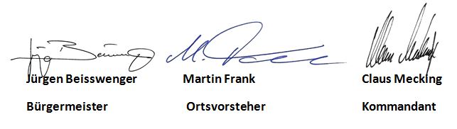 unsere Gemeinde lebt vom Engagement unserer Bürgerinnen und Bürger, das gilt in ganz besonderem Maße für eine so wichtige Einrichtung wie unsere Freiwillige Feuerwehr, denn was nützen die neusten Fahrzeuge und die beste Ausrüstung, wenn nicht Männer und Frauen mit Erfahrung und Ausbildung, im Übungs-, wie im Einsatzfall damit richtig und kompetent umgehen können.