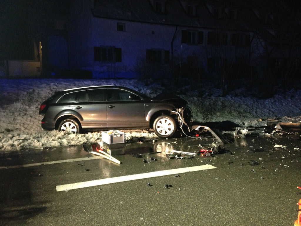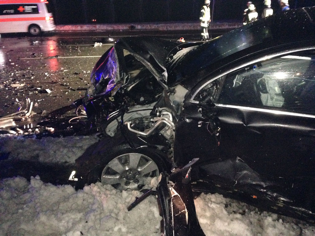Die Insassen des SUV, 2 Erwachsene und 3 Kinder auf dem Weg in den Skiurlaub, wurden nur leicht verletzt.