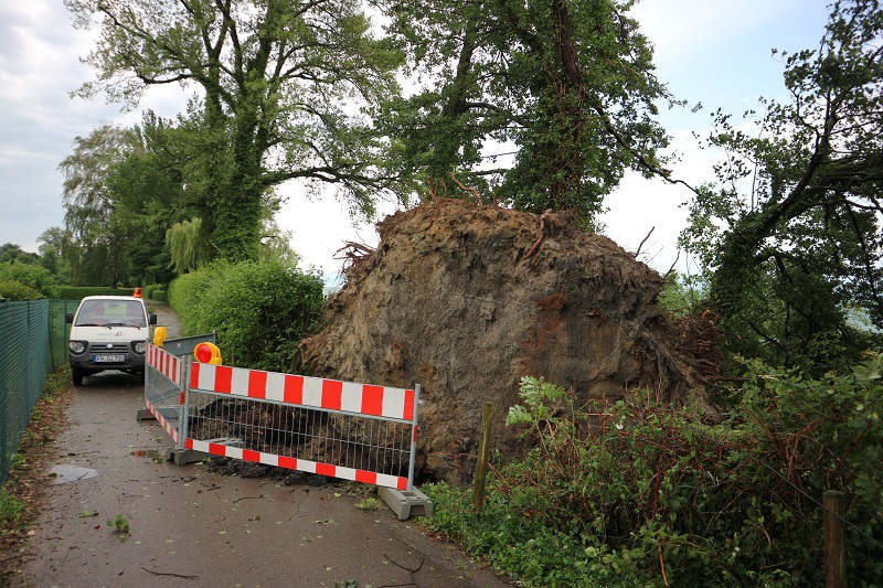 Infolge eines Unwetters hatte die Feuerwehr Immenstaad von Samstag auf Sonntag ab ca. 17:30 zahlreiche Einsätze zu bewältigen. Unter anderem waren Bäume auf Verkehrswege gestürzt und Wasser in Gebäude eingedrungen.