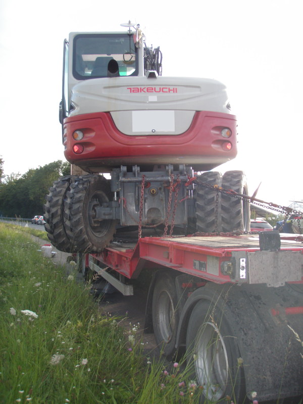 (MM) Zu einem Verkehrsunfall auf der B31 wurde die Feuerwehr Immenstaad am Mittwoch Abend alarmiert. Ein auf einem Anhänger verladener Bagger war höher als die Brücke zwischen Immenstaad und Kippenhausen und mit dieser kollidiert. Durch den Aufprall wurden Teile der Brücke herausgebrochen, deren Struktur beschädigt und der Bagger drohte vom Anhänger zu stürzen. Der Unfall war bereits gegen 16:45 Uhr geschehen. Erst später, als beim Versuch den Bagger in eine sichere Position zu verbringen Betriebsmittel ausliefen, wurde die Feuerwehr hinzugezogen. Durch die Feuerwehr Immenstaad wurden die Betriebsmittel aufgefangen und die Bergung begleitet. Zudem wurde durch einen Statiker der Feuerwehr die akute Gefahr durch die Brückenbeschädigung abgeschätzt. Um die B31 wieder gefahrlos befahrbar zu machen, wurden abstehende und lose Teile der Brücke entfernt.