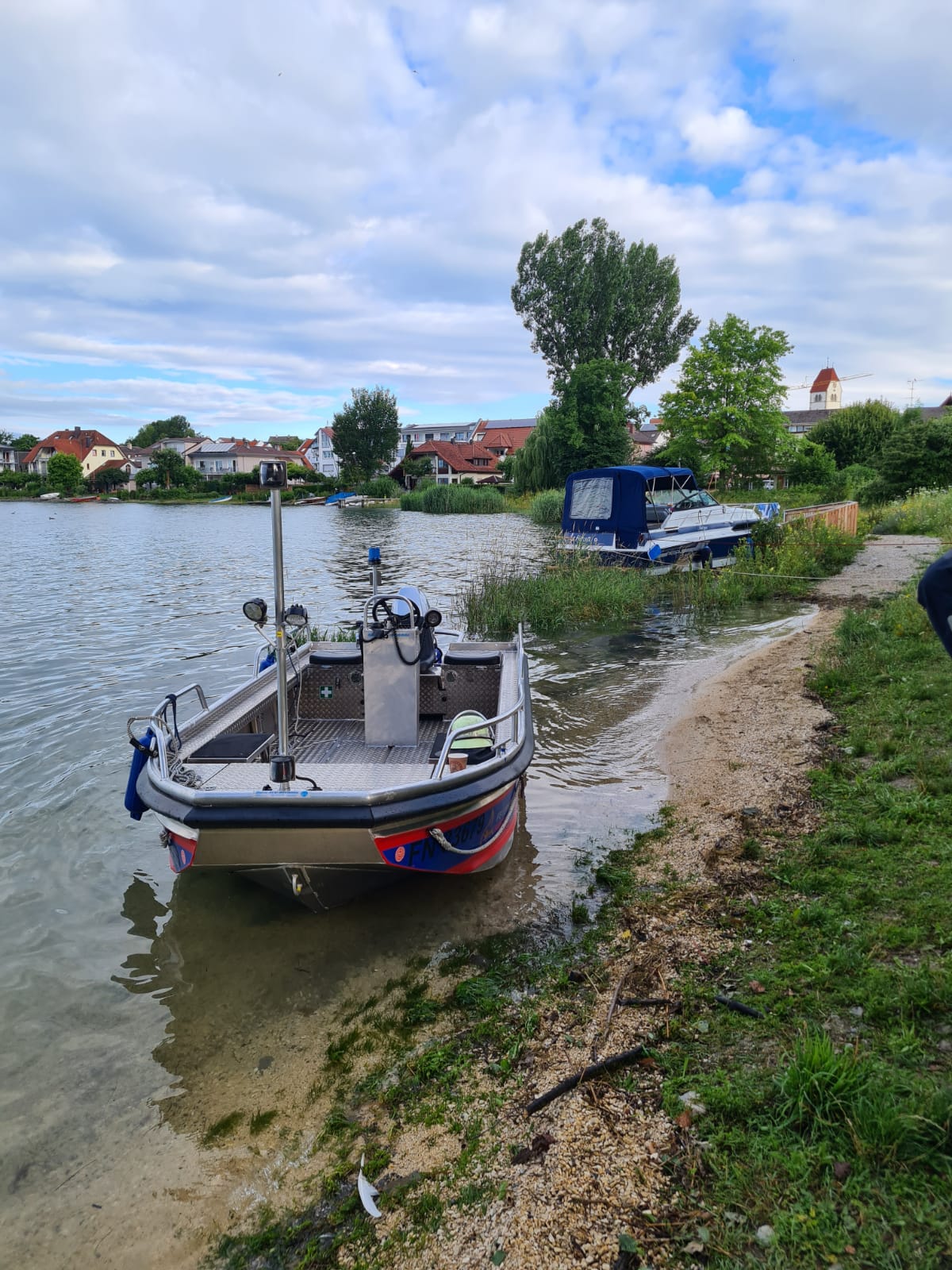 Jedoch wurden wir an der Einsatzstelle auf ein weiteres Boot aufmerksam, was in der Bucht westlich des Landungsstegs manövrierunfähig wurde, und in Folge des auflandigen Windes am Ufer gestrandet ist.