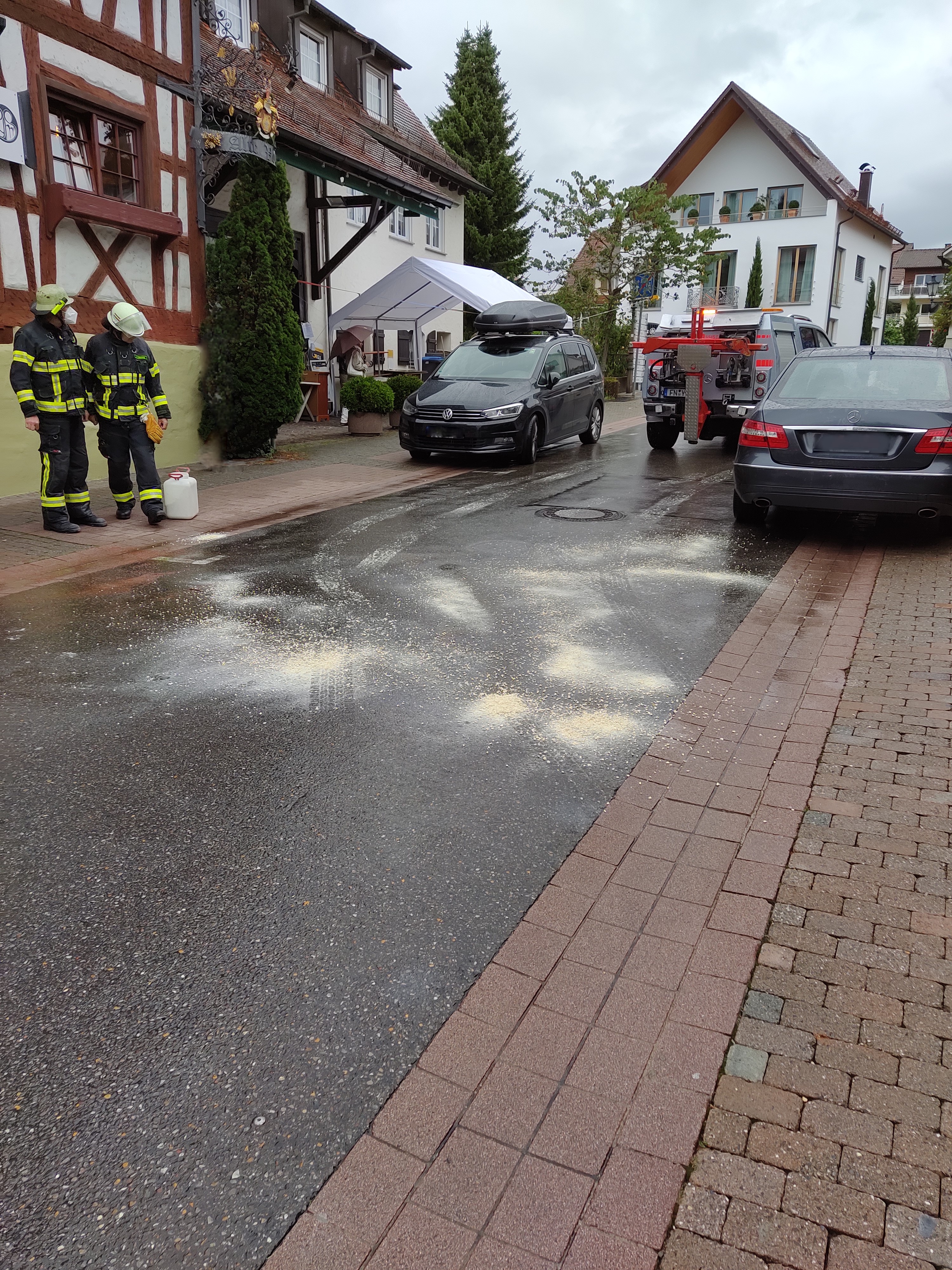 (MR) Am Samstagnachmittag wurden wir zu einer Ölspur in der Bachstraße alarmiert. Aus einem PKW auslaufendes Hydrauliköl drohte hier in den Abfluss zu fließen. Der betroffene PKW konnte schnell abgeschleppt werden. Wir nahmen die auslaufenden Stoffe zunächst mit Ölbindemittel auf und konnten so zügig die Straße räumen.