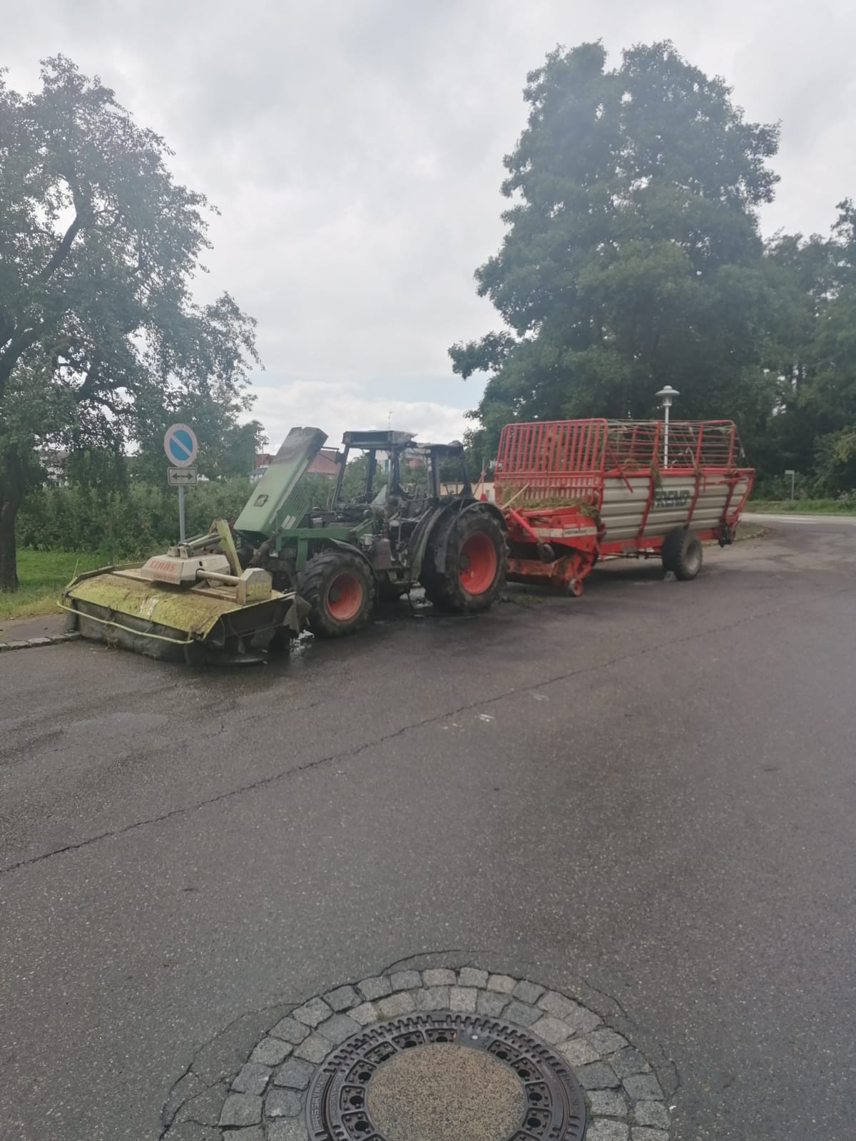 (AP) Am Dienstag Mittag wurden wir zu einem brennenden Traktor gerufen. Bei unserem Eintreffen stand der Traktor in Vollbrand. Wir waren mit 2 LF vor Ort und konnten den Traktor unter Einsatz von Atemschutz schnell löschen. Verletzte waren glücklicherweise keine zu beklagen.