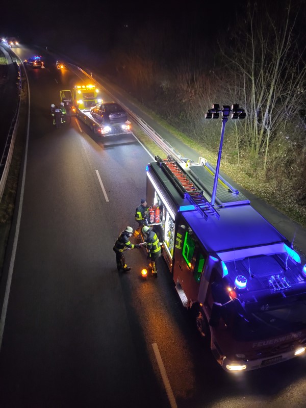 (MR) Am Samstagabend wurden wir zu einem Verkehrsunfall auf der B31 gerufen. Vor Ort sicherten wir zunächst die Einsatzstelle ab und leuchteten den Bereich aus. Außerdem reinigten wir die Straße von Autoteilen. Wir blieben vor Ort bis beide am Unfall beteiligten Fahrzeuge abgeschleppt wurden.