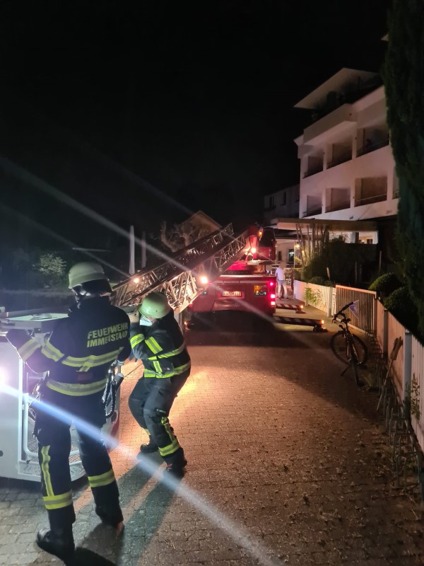 (MR) Am späten Donnerstagabend wurde unsere Drehleitermannschaft in die Bachstraße alarmiert um einer Person in gesundheitlicher Notlage zu helfen. Diese galt es aus einem der oberen Stockwerke eines Hotels zu retten.