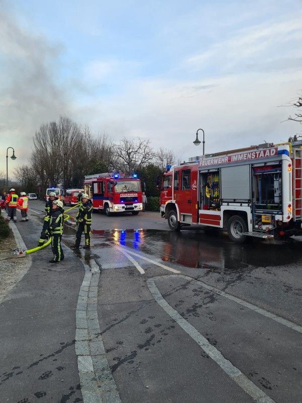Ausgerückte Fahrzeuge: Fl. Immenstaad 19 (MTW), Fl. Immenstaad 33 (DLK), Fl. Immenstaad 42 (LF), Fl. Immenstaad 46 (HLF), Fl. Immenstaad 74 (GW-T)