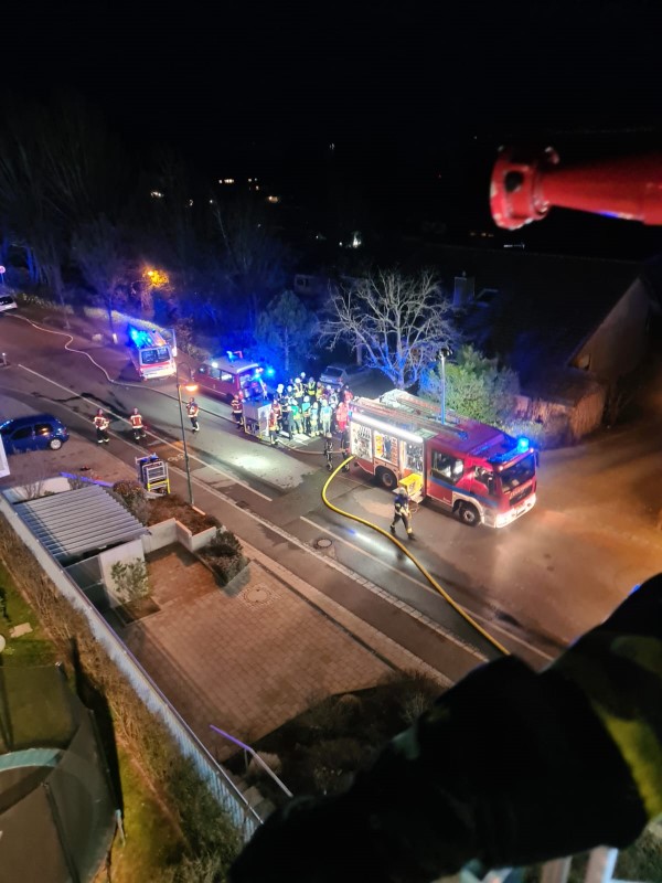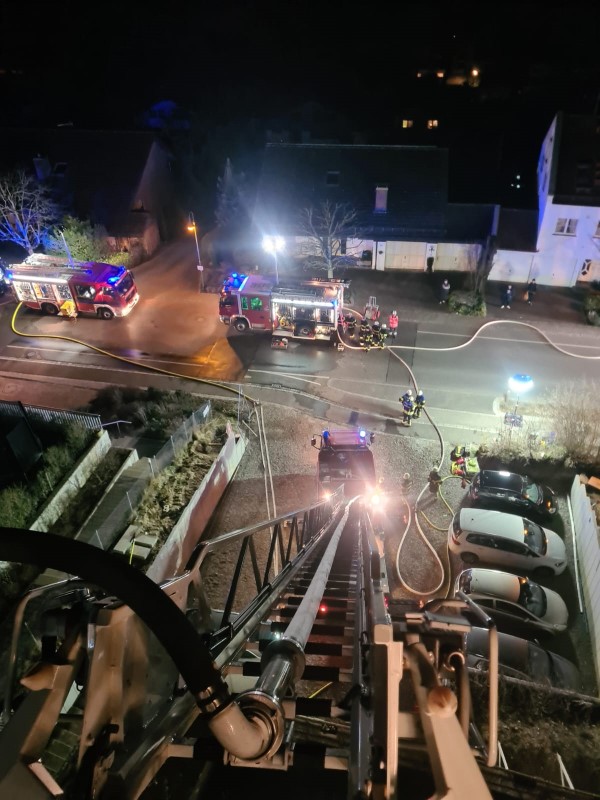 (MR) Am späten Samstagnachmittag wurden wir zu einem brennenden Dachstuhl in die Friedrichshafener Straße alarmiert. Vor Ort leiteten wir zügig Löschmaßnahmen über die Drehleiter und das Gebäudeinnere ein und konnten somit einen Überschlag auf weitere Gebäude verhindern. Vor Ort wurden wir unterstützt von Kräften der Feuerwehr Friedrichshafen (Friedrichshafen, Fischbach und Kluftern) und dem stellvertretenden Kreisbrandmeister Michael Fischer. Die Johanniter-Unfall-Hilfe und das DRK Immenstaad waren ebenfalls vor Ort und unterstützten uns von medizinischer Seite. Um einen besseren Überblick über die Lage zu bekommen wurde ebenfalls die Drohnengruppe des Landkreises aus Oberteuringen angefordert. Bürgermeister Johannes Henne war ebenfalls vor Ort um sich ein Bild von der Lage zu machen. Im Nachgang kontrollierten wir die Dachhaut über die Drehleiter stetig auf Glutnester und waren mit einer Brandwache bis zur Abnahme durch die Polizei am frühen Sonntagmorgen vor Ort.
