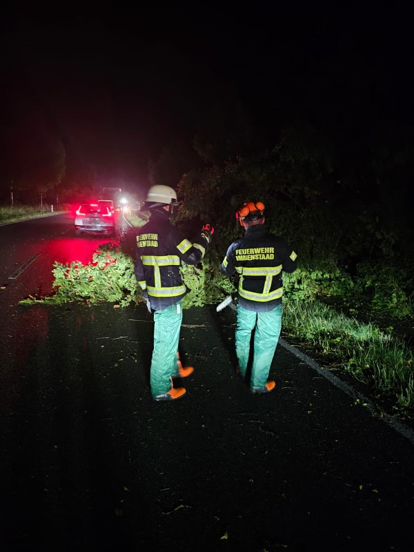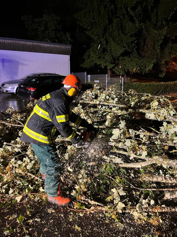 (MR) Am vergangenen Dienstag und Mittwoch wurden wir infolge der Unwetterlage zu mehreren Einsätzen im Gemeindegebiet alarmiert. Die starke Sturmlage bereitete uns an diversen Stellen im Gemeindegebiet umgestürzte und teils auch entwurzelte Bäume. Wir waren in der Nacht auf Mittwoch und am Morgen verstärkt im Einsatz um die Sturmschäden von den Straßen zu räumen. Insgesamt waren wir mit unserem gesamten Fuhrpark an insgesamt zwölf Einsatzstellen tätig.