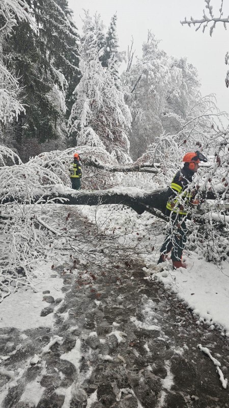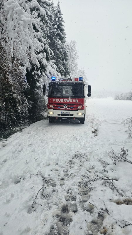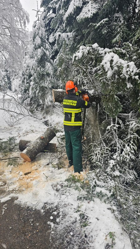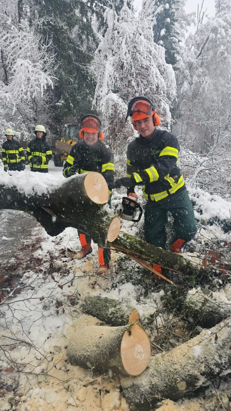 (MR) Am Samstagmorgen wurden wir aufgrund des starken Schneefalls in der Nacht alarmiert. Es galt an mehreren Stellen im Gemeindegebiet herabgestürzte Äste von den Straßen und Wegen zu entfernen.