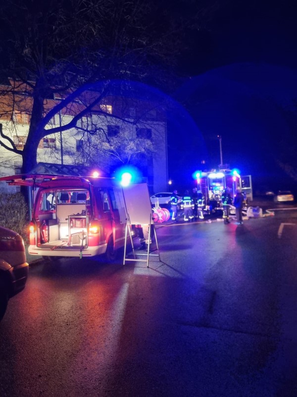 (MR) Am Neujahrstag wurden wir zu einem Terrassenbrand alarmiert. Wir leiteten umgehend Maßnahmen zur Brandbekämpfung ein und konnten das bereits auf den Rollladen übergegriffene Feuer löschen. Wir wurden vor Ort von Einsatzkräften des DRK OV Immenstaad sowie der Polizei unterstützt. Der Regelrettungsdienst übernahm den Transport von drei Personen ins Krankenhaus da diese zuvor Rauchgase eingeatmet hatten. Nachdem wir das Gebäude mittels einer Abluftöffnung rauchfrei machen konnten und die betroffene sowie die darüberliegende Wohnung kontrolliert hatten rückten wir wieder ein.
